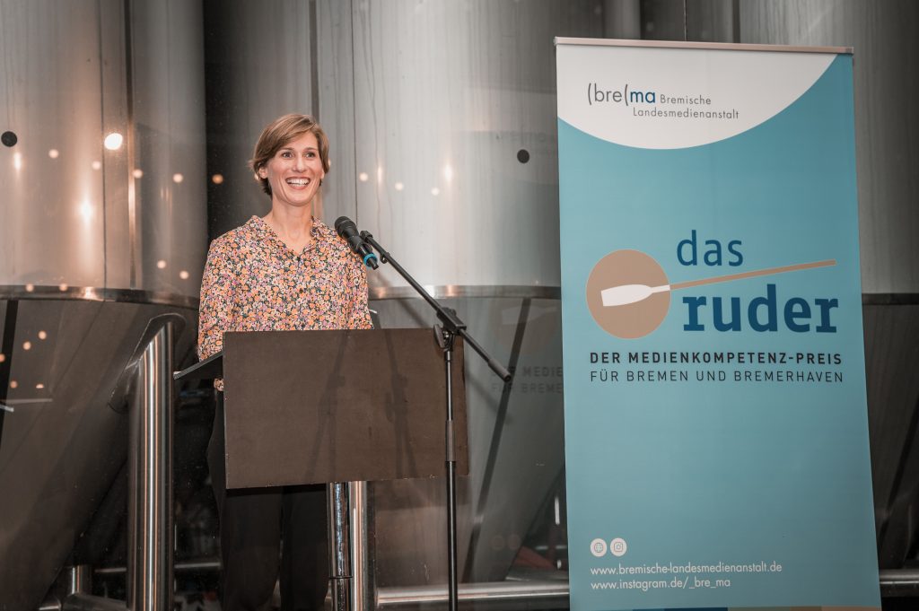 Ich hatte die große Freude, das diesjährige »ruder«, den Medienkompetenzpreis der Bremischen Landesmedienanstalt, zu übergeben - an Daniel Magel vom Sozialunternehmen Hood Traininig für die Projektidee »How moviez are made«. Dahinter steckt ein geplantes Workshopformats für die Zielgruppe von Hood Training, bei dem ein professioneller Videograph Jugendlichen zeigt, wie sie Filme planen, aufnehmen und postproduzieren können. Wie aus dem „Ich halte einfach mal drauf“ ein professionelles Hobby, vielleicht sogar ein Beruf werden kann. Eine Kompetenz, die schon jetzt händeringend gesucht wird - die es aber beiweitem nicht so zahlreich gibt, wie sie benötigt wird. Hält man sich die Zielgruppe von Hood Training genau vor Augen – Jugendliche, teilweise geflüchtete und unbegleitete, auf jeden Fall solche, deren Eltern nicht mal eben ein Praktikum bei Fernsehen oder in einer großen Agentur klar machen können – wird klar: dieser Workshop bringt vielleicht Menschen in Kommunikations- und Medienberufe, deren Perspektive aktuell noch selten vertreten ist, aber unbedingt mehr vertreten sein sollte. Well done, Daniel Magel!