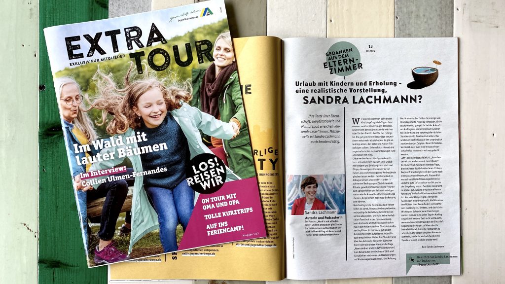 Als sich die Deutschen Jugendherbergen erkundigten, ob ich eine Kolumne zur Frage »Wie erholsam ist Urlaub mit Kindern?« für ihr Mitgliedermagazin schreiben würde, musste ich nicht lange überlegen: Na klar! Die Jugendherbergen und ich arbeiten nun schon seit fast zehn Jahren zusammen. Mal auf Bundesebene, mal auf Landesebene. Mal schreibe ich Reportagen oder stelle Influencer Events auf die Beine, mal moderiere ich Youtube-Videos oder Instagram-Stories. Spaß macht es immer!
